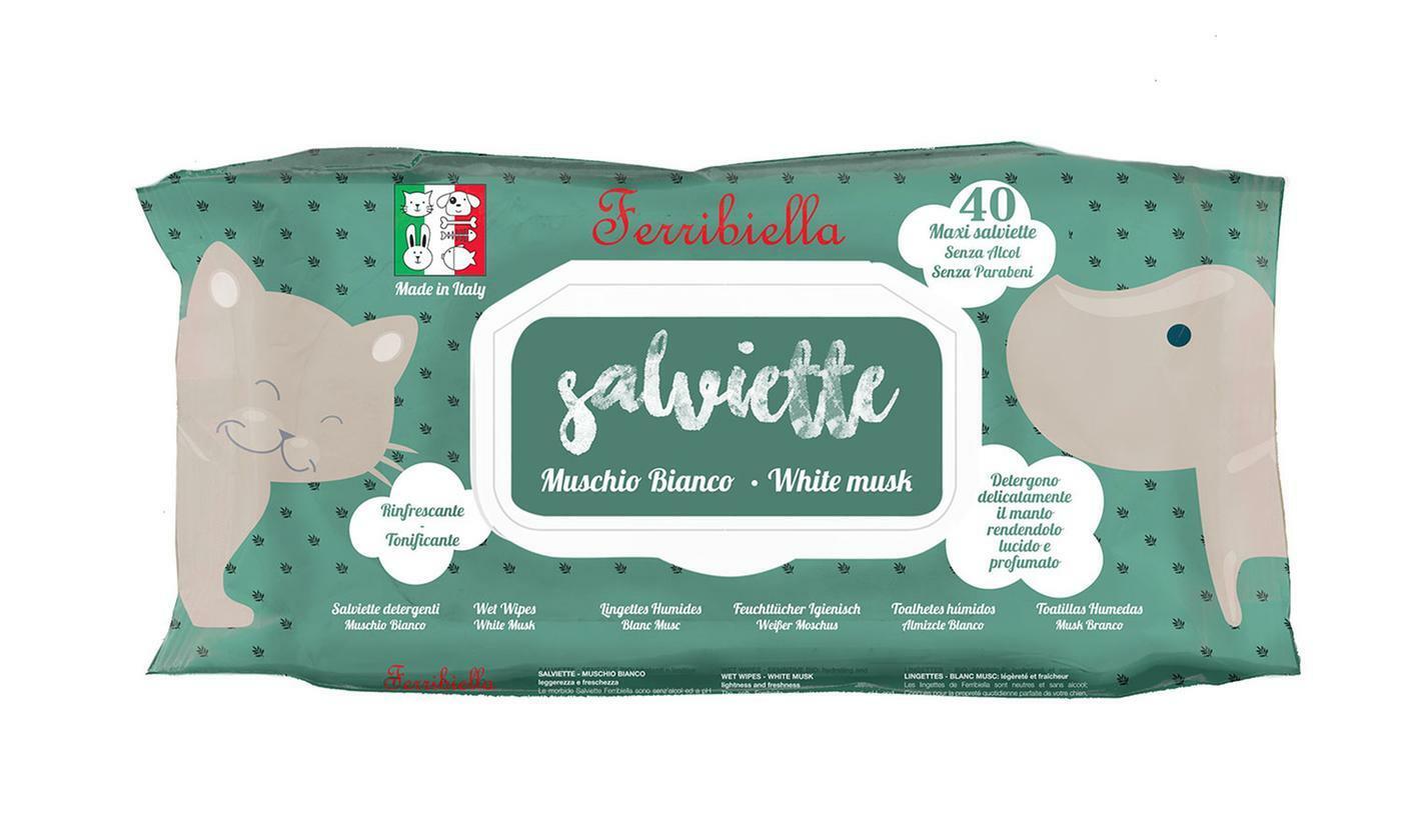 Ferribiella 40 Salviette Detergenti Muschio bianco per Cani e Gatti