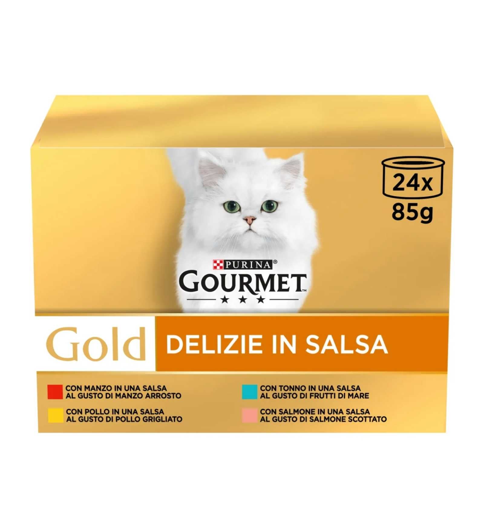 Gourmet Gold – Delizie in Salsa Multipack 24×85 – Manzo/Pollo/Tonno/Salmone