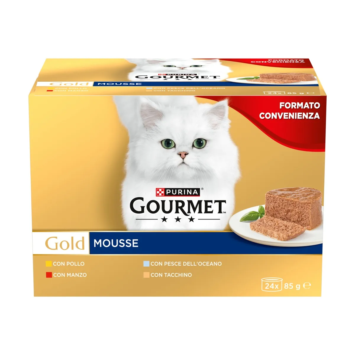 Gourmet Gold – Mix Mousse Multipack 24×85 – Pollo/Manzo/Pesce dell’Oceano/Tacchino