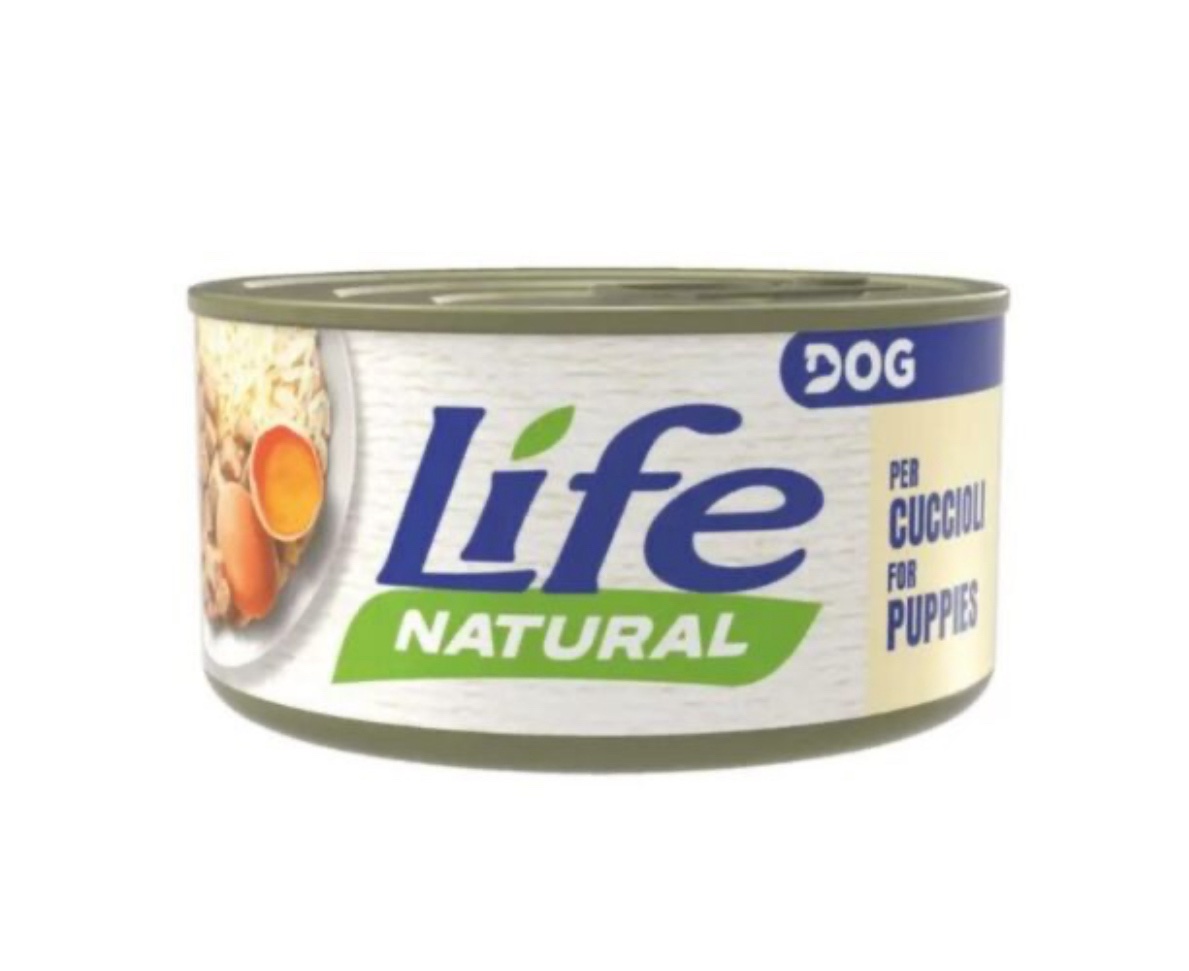 Alimento naturale per cuccioli fatto con petto di pollo macinato, uova ed altri ingredienti preziosi per favorire una corretta crescita