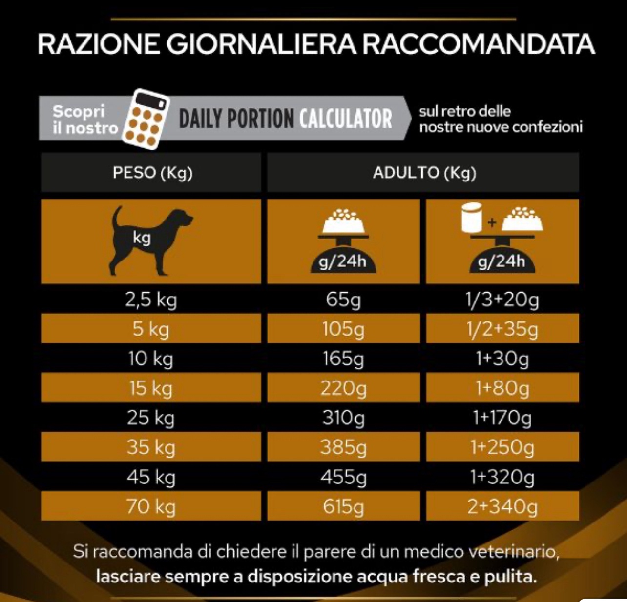 Razione giornaliera consigliata: vedi tabella illustrativa in gallery.