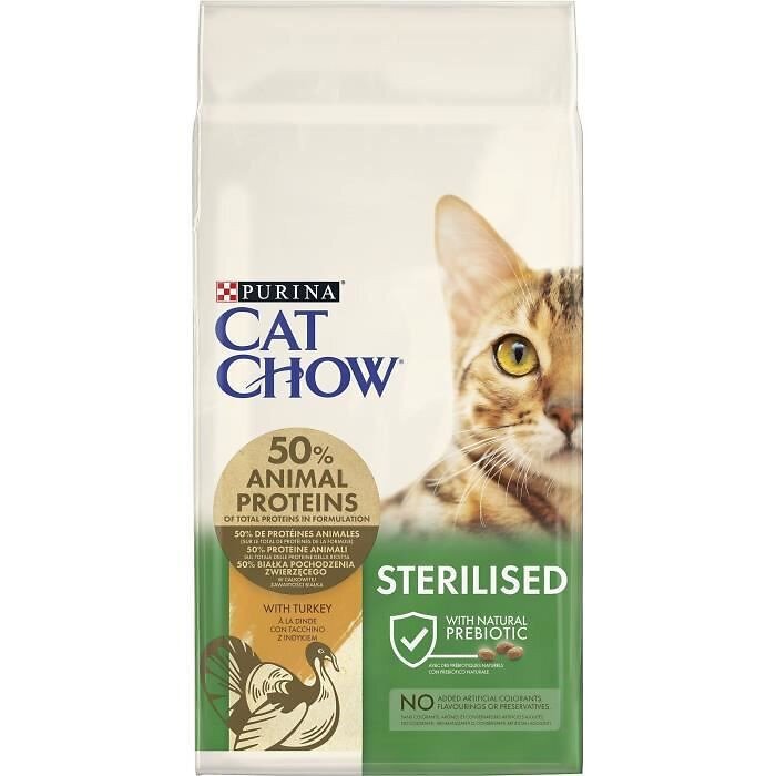 Purina Cat Chow Sterilised ricco in Tacchino è stato specificatamente studiato per soddisfare le specifiche e mutate esigenze nutrizionali dei gatti castrati e sterilizzati.